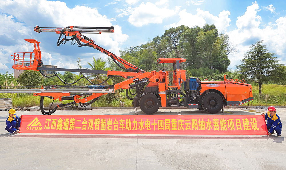 鑫通雙臂鑿巖臺(tái)車助力水電十四局重慶云陽抽水蓄···