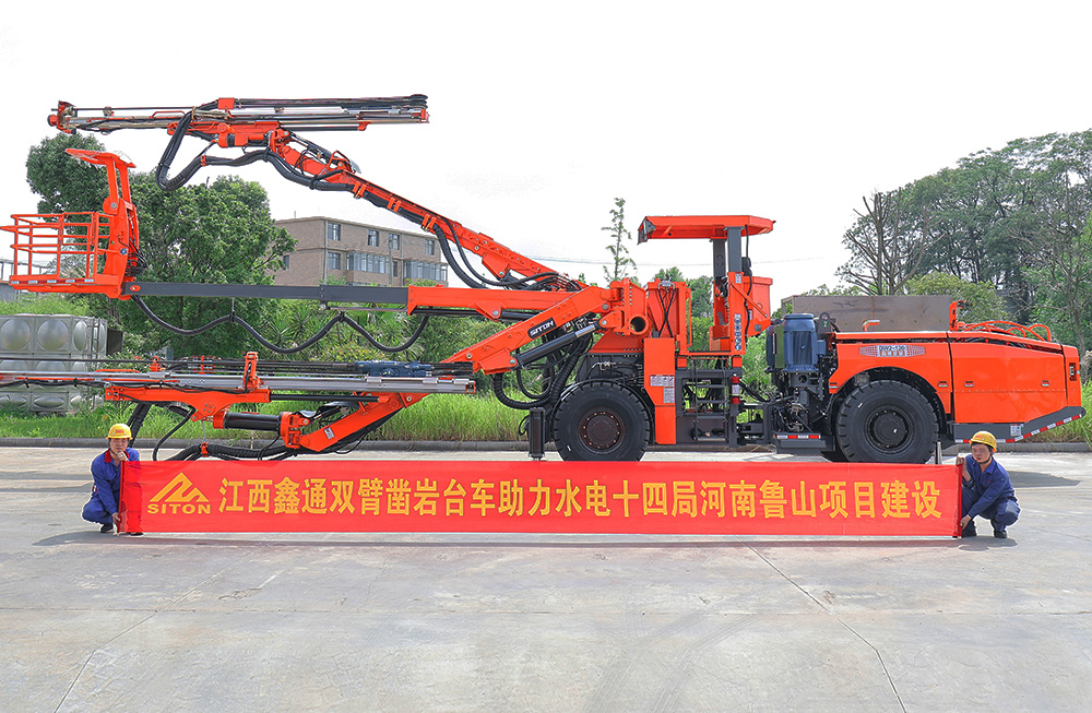鑫通雙臂鑿巖臺(tái)車助力水電十四局河南魯山建設(shè)項(xiàng)···
