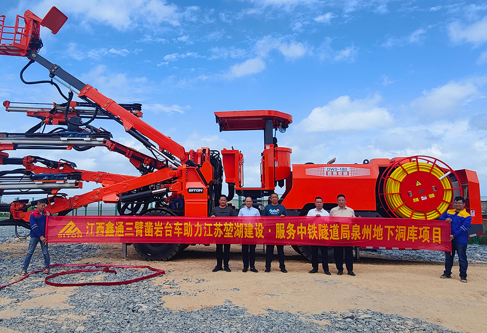 鑫通三臂鑿巖臺(tái)車助力江蘇堃湖建設(shè)·服務(wù)中鐵隧···